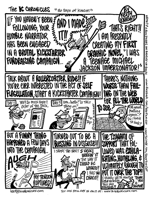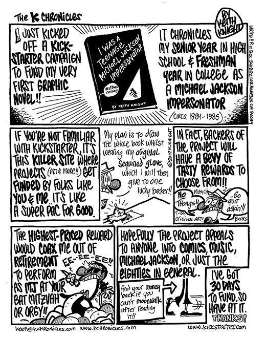 In 2012, your humble gentleman cartoonist launched a Kickstarter campaign for his very first graphic novel, I Was A Teenage Michael Jackson Impersonator, without knowing how to run a Kickstarter campaign.